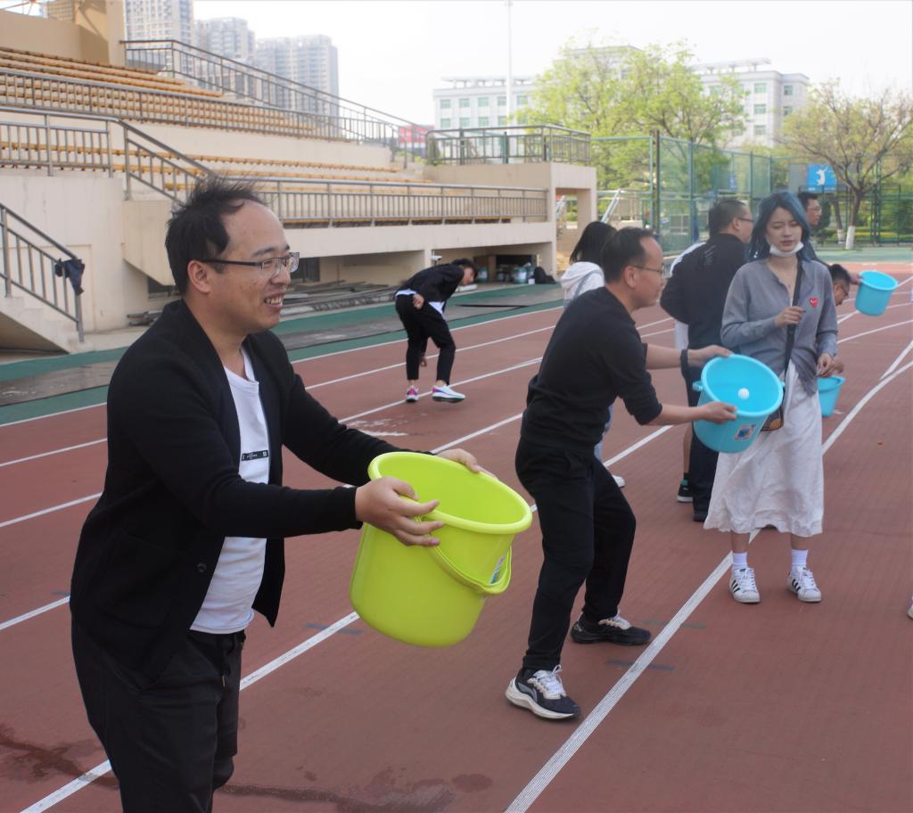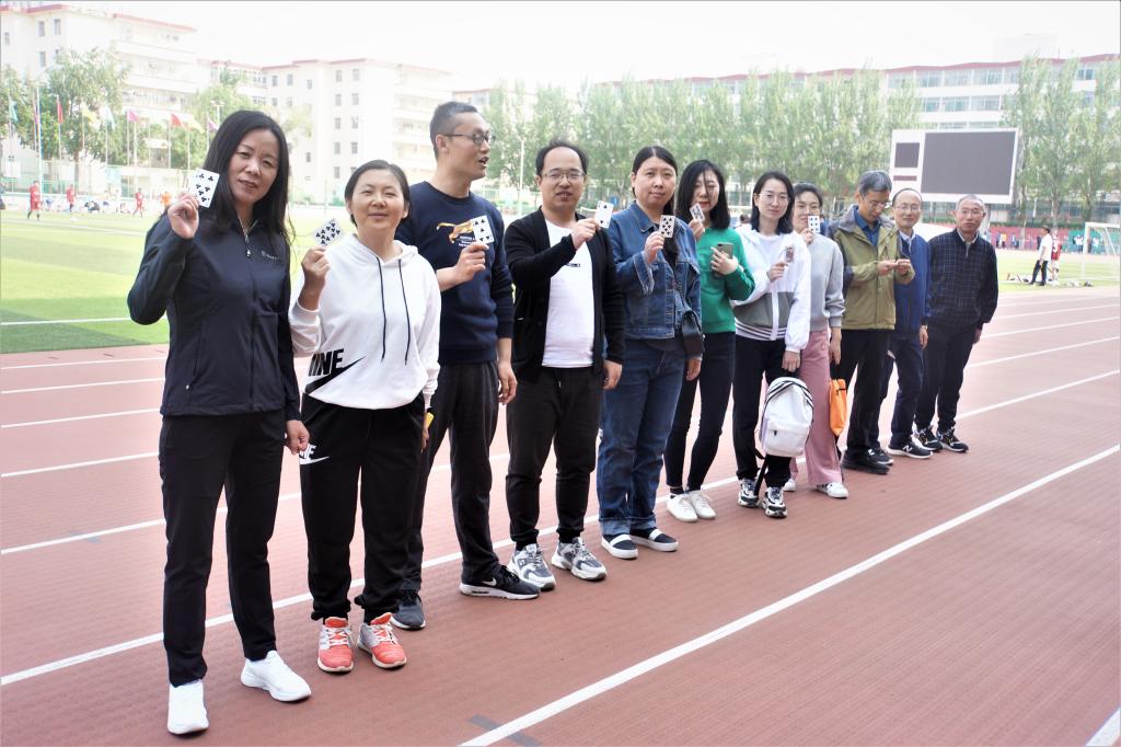 分工会在坞城校区以“迎校庆、展风采、凝聚力、创佳绩”举办教师趣味运动会。 “生活不只诗和远方,还有不羁的岁月和年轻的赛场;工作不止书和文件,还有欢乐的流年和满腔的激情”。本届运动会全院教职工均积极参加,远动会开始之前,参赛运动员们依次抽取扑克牌(男子抽取1-5号,女子抽取6-12号),按照花色进行分组,同号的为一组,全部成员分为红桃、黑桃、方块和梅花四组,然后各组选出组长,代表该组抽签,确定出场顺序。