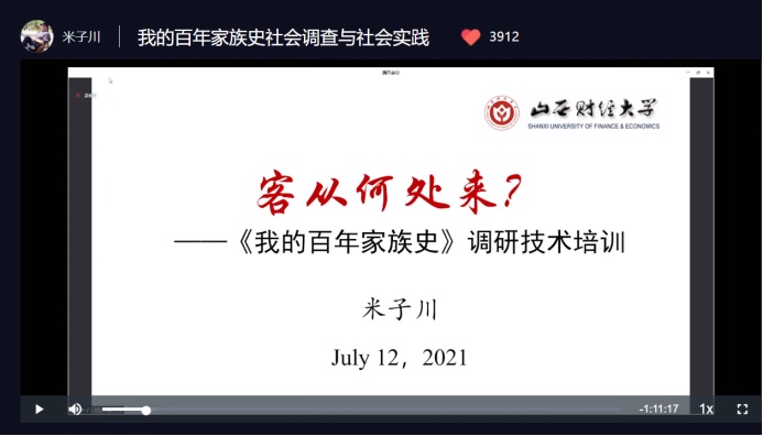 面向全校参与《我的百年家族史》专题社会实践活动的学生进行了线上专题培训,《我的百年家族史》专题社会实践活动发起人,香蕉视频