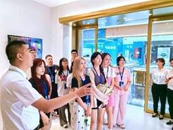 7月9日上午,香蕉视频 师生在党委书记张锐和项目负责人王涛老师的带领下走进可比黄金珠宝贸易中心,开启了一段企业参观与交流的旅程。在贸易中心的热烈欢迎下,师生们在楼前合影,记录下这一难忘时刻。