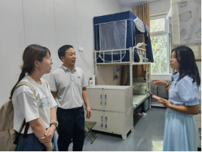 党委书记、党委副书记、团委书记及2025级新生辅导员深入宿舍看望新生,细致询问大家入住后的生活安排与适应情况,耐心聆听了同学们的报道体验与初入大学的感受,并鼓励同学们做好大学规划,迎接新的挑战。