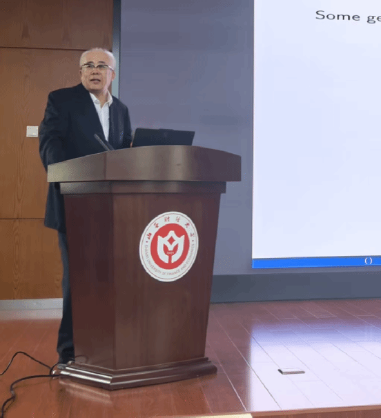 讲座上,田永革教授围绕矩阵秩与惯性方法与大家展开分享。他先阐释矩阵秩的核心内涵,讲解对称矩阵正、负惯性指数定义,以及惯性指数对矩阵合同关系的决定作用和与矩阵正定性、半正定性的关联;介绍创新性相关成果并结合正交投影矩阵特性,指出可借助分块矩阵、合同变换简化高维非线性矩阵关系。在应用环节,以线性回归模型及其受限模型为例,说明矩阵秩与惯性方法在回归模型一致性检验、参数估计可估性与无偏性判定等统计学核心问题中的应用,展现出解决实际统计问题的优势。