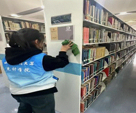 书香志愿显担当。3月14日,坞城校区图书馆迎来了一批特殊的"图书管理员"。志愿者们严格按照分类规则,仔细核对每一本书的类别,耐心地将各类书籍一一归位。他们还认真检查书籍是否存在破损情况,一旦发现,便及时记录下来以便后续处理。擦拭灰尘时,志愿者们不放过书架、桌椅、窗台等任何一个角落。他们用干净的抹布,认真地擦拭着每一处地方,致力于为读者营造整洁、舒适的阅读环境。志愿者们的辛勤付出有力地支持了图书馆的日常运作,让知识的殿堂更加温馨宜人,为广大师生营造了浓厚的阅读氛围。