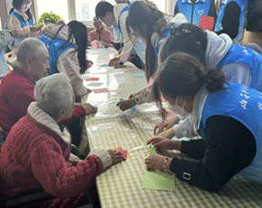 银铃陪伴显真情。3月5日,在第62个"学雷锋纪念日"这个特殊的日子里,志愿者们走进太原市欣宁护理院,开展"雷锋精神照夕阳"主题活动。活动现场,《当那一天来临》的激昂旋律与《学习雷锋好榜样》的经典歌声交织回荡,唤起了老人们的青春记忆。手指操教学环节,志愿者们俯身示范,手把手教导《啊啦桑桑》手指操;手工制作区,五彩的扭扭棒在老人们的巧手下化作朵朵鲜花,欢声笑语中传递着浓浓的温情。