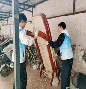社区服务暖人心。3月11日,志愿者们走进桃一社区,兵分两路:一组化身"城市美容师",用铲刀和喷壶为楼道"祛斑除痘",他们手持多功能铲刀和垃圾袋,认真细致地铲除小广告,经过数小时的不懈努力,原本杂乱不堪的楼道墙面焕然一新;另外一组充当"搬运工",主动为居民提供帮助,帮忙搬运大件家具和沉重的生活物资。他们不辞辛劳,一趟又一趟地奔波,用汗水搭建起与居民之间的连心桥。社区李奶奶拉着志愿者的手说:"这些孩子就像自家孙子孙女一样贴心!"经过大家的努力,社区环境焕然一新,邻里关系更加融洽。