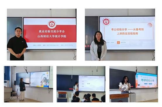 分享会上,入职招商银行太原分行的田博洋同学深入剖析求职底层逻辑,强调统计专业学生制作简历时应突出项目经历,同时建议通过企业官网、校内就业平台等多渠道收集信息,充分把握就业机会。成功上岸太原市尖草坪区税务局郝瑞华同学围绕科学选岗与高效备考展开,提出结合专业优势和岗位报考限制筛选职位,合理规划时间、分模块突破行测申论重难点的实用策略。