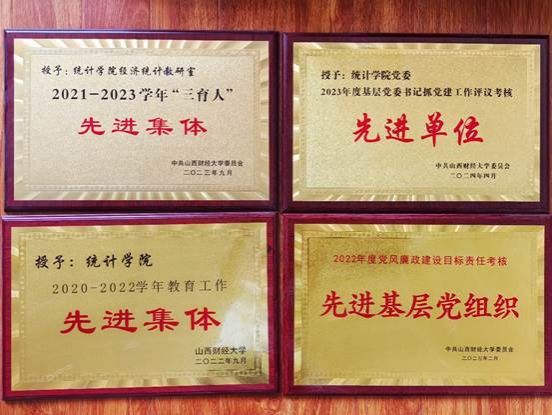 《统计学》《抽样调查与分析》《数据科学的概率论基础》《计量经济学导论(双语)》《我的百年家族史》《数据挖掘》6门课程已被认定为省级一流课程,《宏观经济统计分析》被认定为省级一流建设课程。《统计学》《宏观经济统计学》《数据科学的统计基础》《数据科学的概率论基础》4门课进入校级课程思政的建设梯队。《博弈论》《统计建模方法》《应用随机过程》进入校级全英文课程建设梯队。